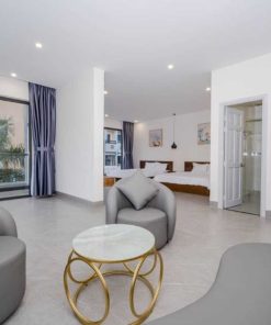 - Phòng khách rộng rãi kết hợp với bếp hiện đại, được trang bị đầy đủ công cụ nấu nướng cơ bản, giúp bạn và gia đình dễ dàng tổ chức các bữa ăn
